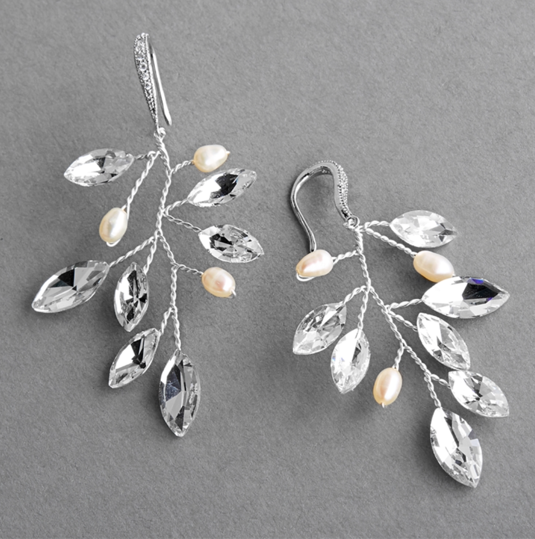 Hand-Crafted boho style earrings with genuine freshwater pearls and European marquis crystal gemstones