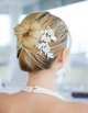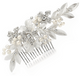 Enameled leaves with hand-wrought pearl and crystal flowers create this breathtaking wedding hair comb.