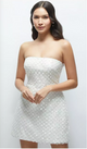 Rock this stunning floret pearl sequin mini dress that's all kinds of chic. The strapless cut lets you flaunt your shoulders, while the mini bell skirt serves up just the right amount of flare. Each sequin catches the light, making you the shimmering focal point of any celebration. Perfect for a reception switch-up or a chic city hall "I do," this little white dress is a fresh take on bridal style with a playful edge. Slip on your dreamiest heels, and let this LWD set the tone for a day to remember.
