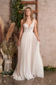 This English net A-line bridal dress embodies a light and whimsical vibe. The ultra chic V-neckline is matched with a lush V-back. . Tonal hand beaded and sequined appliqués add just a touch of shimmer to the sheer bodice, while a beaded trim accents the waist for a slimming effect. Tulle covered buttons top off the skirt finishing with a chapel length train.