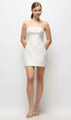 This stunning bridal mini will be perfect for any and every occasion from the engagement party to the reception after-party. This stunning little white dress features an embossed floral jacquard that elevates any look. With a beautiful strapless cuff neckline, the simplicity of the front makes make the gorgeous bow back stand out perfectly.