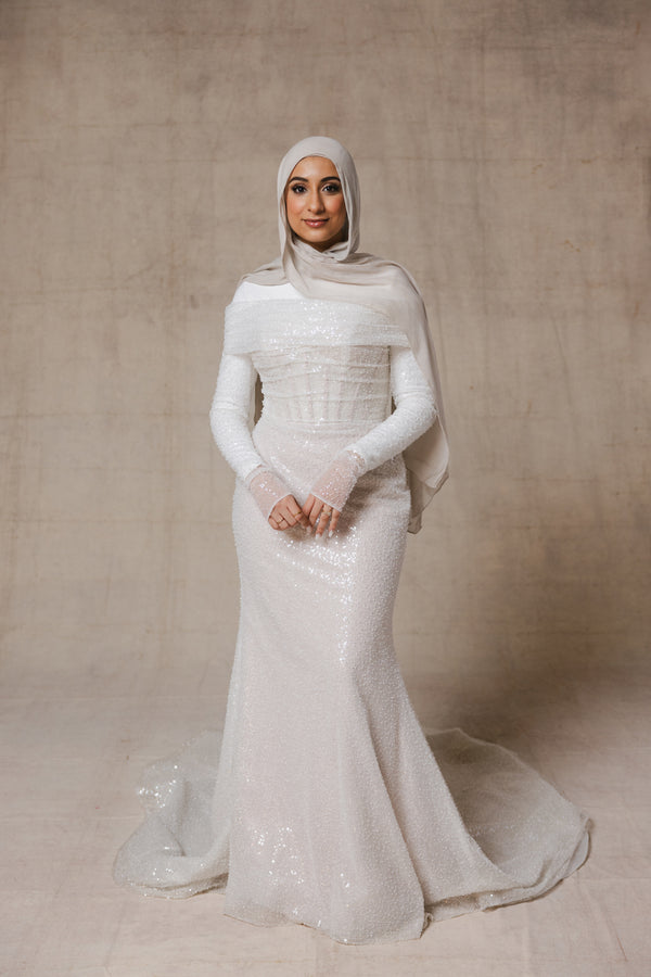 You're bold. You've got a vibe. You're destined for this beaded illusion corset wedding dress made for celestial backdrops and magical lighting. Overpiece sold separately