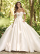 This stunning mikado gown features a pleated sweetheart bodice with a keyhole, off-the-shoulder sleeves, and buttons all the way down the train. The perfect combination of elegance and fun. And did we mention it also features pockets!