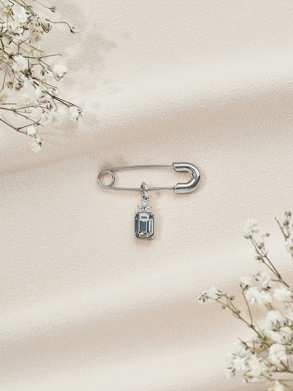 Emerald cut gems have an air of elegance and sophistication. Known to symbolize clarity and self-assurance, this little blue gem is sure to give you a boost of confidence as you walk down the aisle on your big day. Its ocean hue and discrete pin make it the perfect “something blue.”